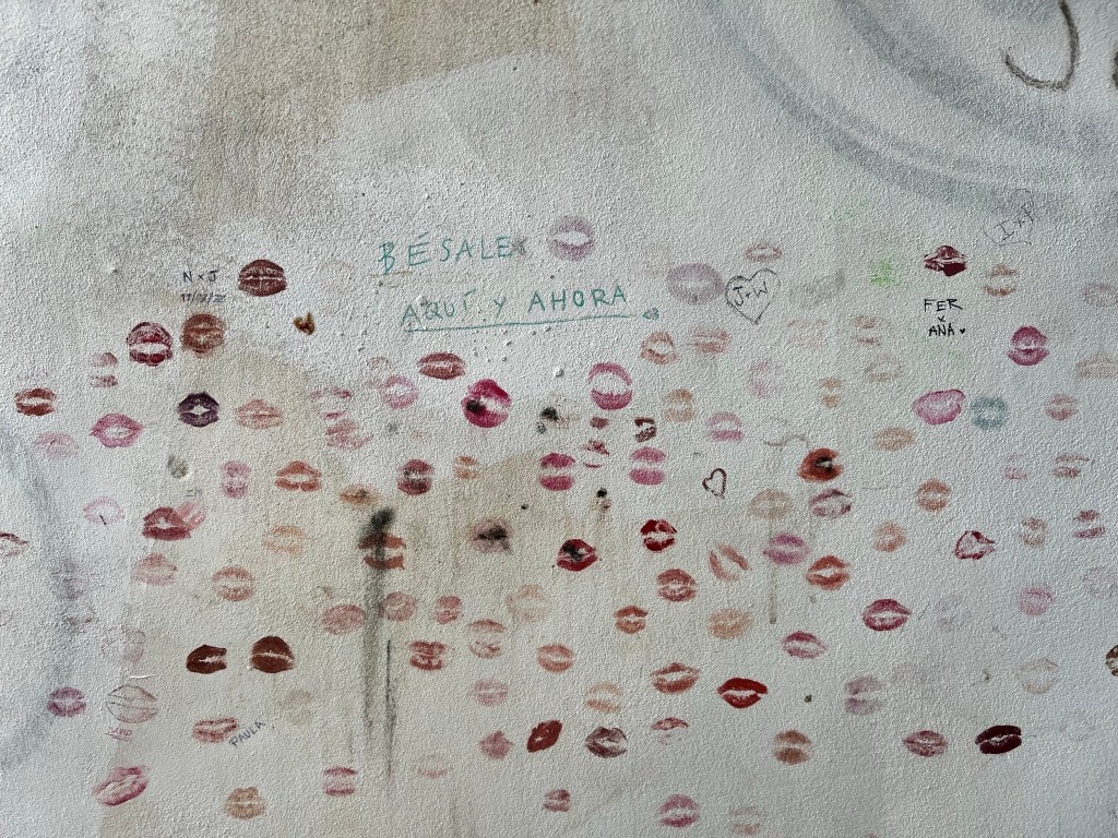 Hope was renewed & I trudged on. Numerous men that passed me by (one made we want to kiss the wall here and now❤️) none offering a hand. I was evidently inspirational as several girls ( some in school uniform & some dressed in heels) cheered me on & offered to help. I finally made it to the plaza where my casa was- huffing & puffing, when a man (not one you’d want your daughter to bring home) (covered in tattoos & piercings & weighing less than Bruto) leapt over the wall & helped the last few steps.