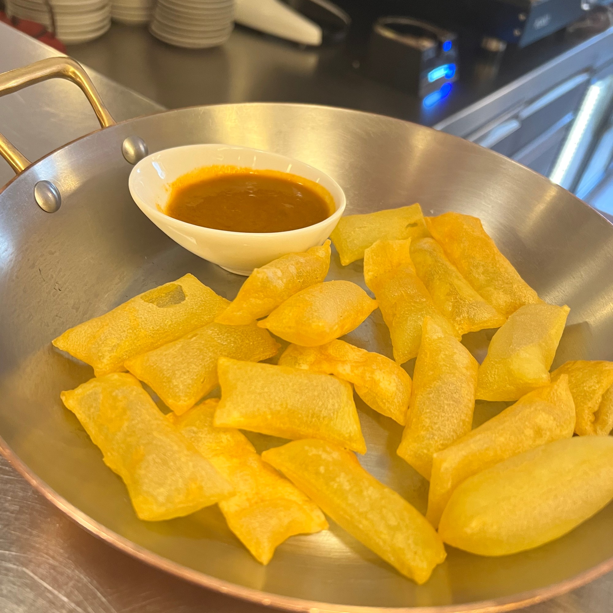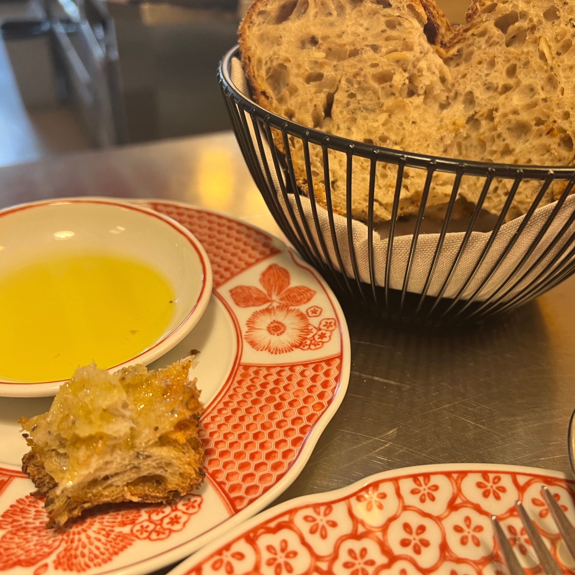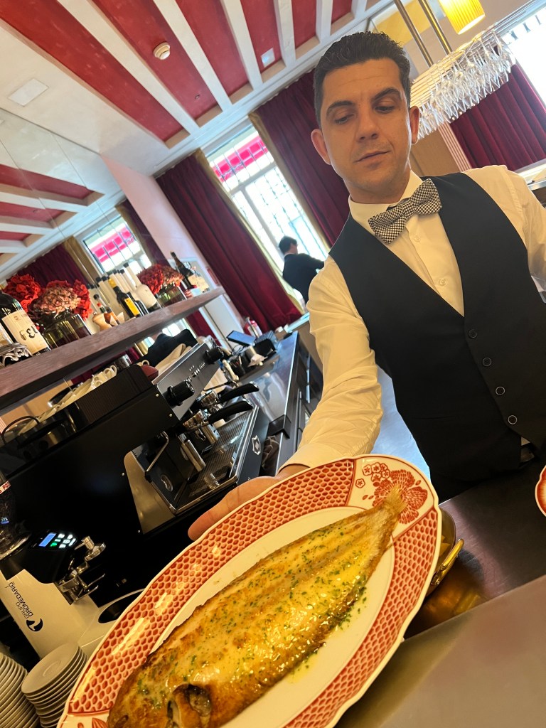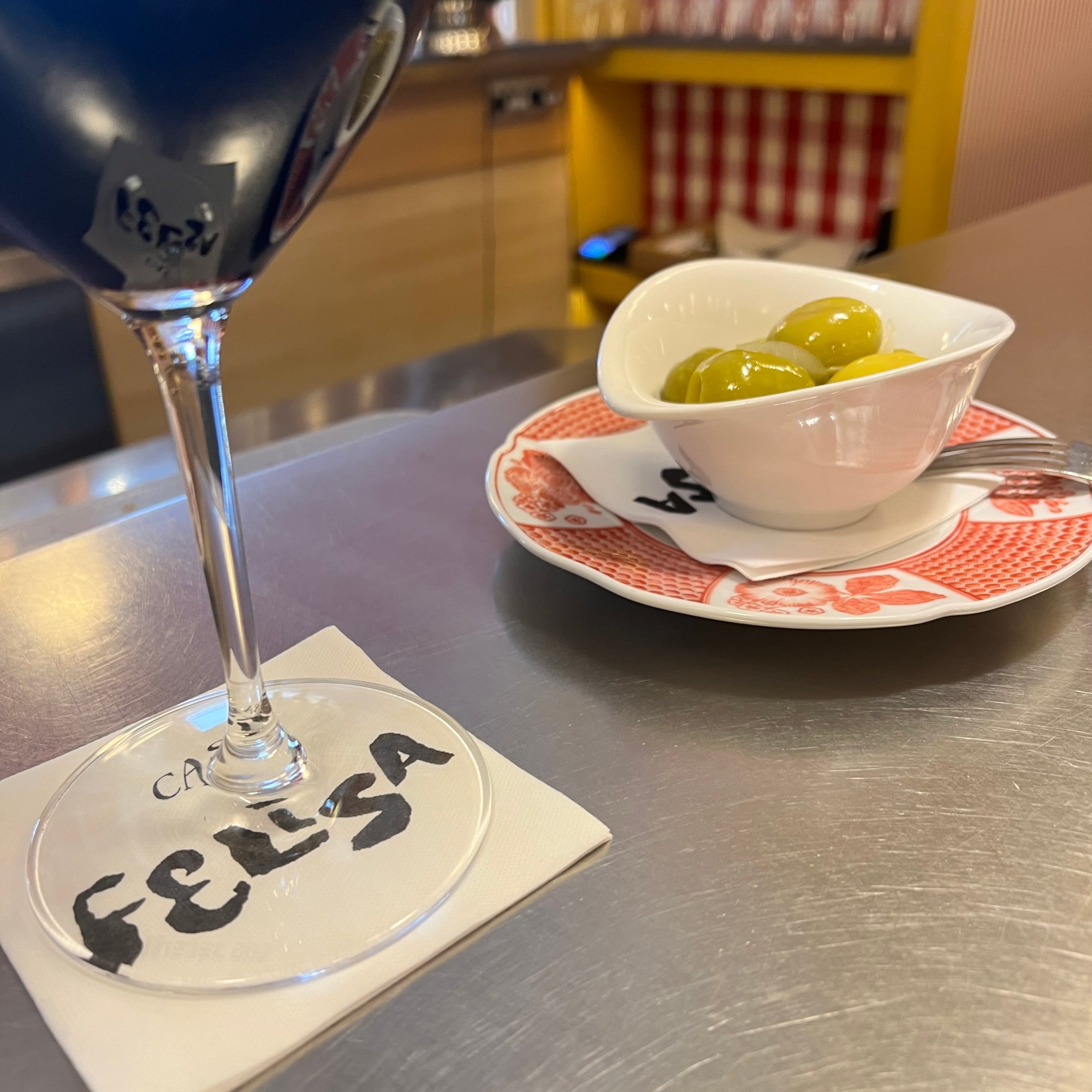 Felt it necessary to have a last lunch in Spain before Yoga; discovered a new great shopping street at the same time. Possible the best fresh fish I’ve had (didn’t eat it all), definitely the best olives and an interesting appetizer, called a souffle?